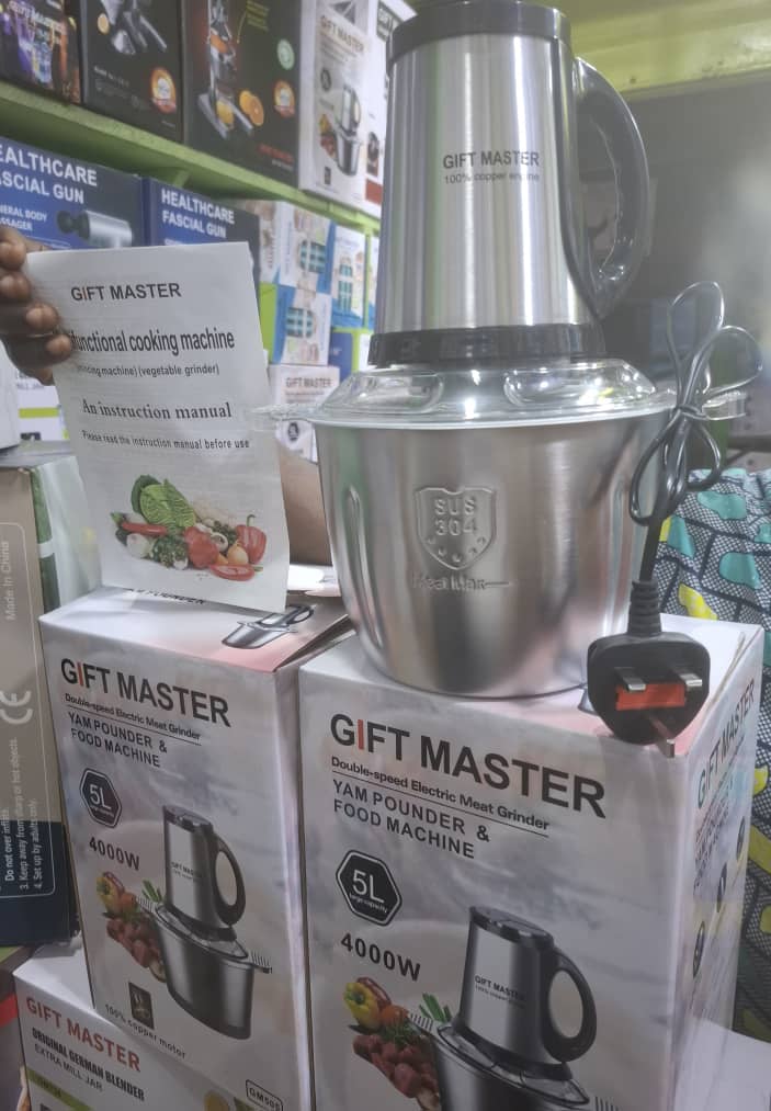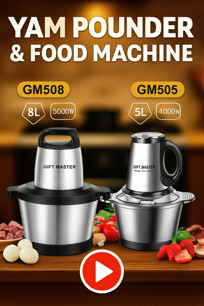 With the Gift Master Yam Pounder & Food Machine, you don’t just pound yam… you chop, grind, blend, and process all your favorite ingredients effortlessly.